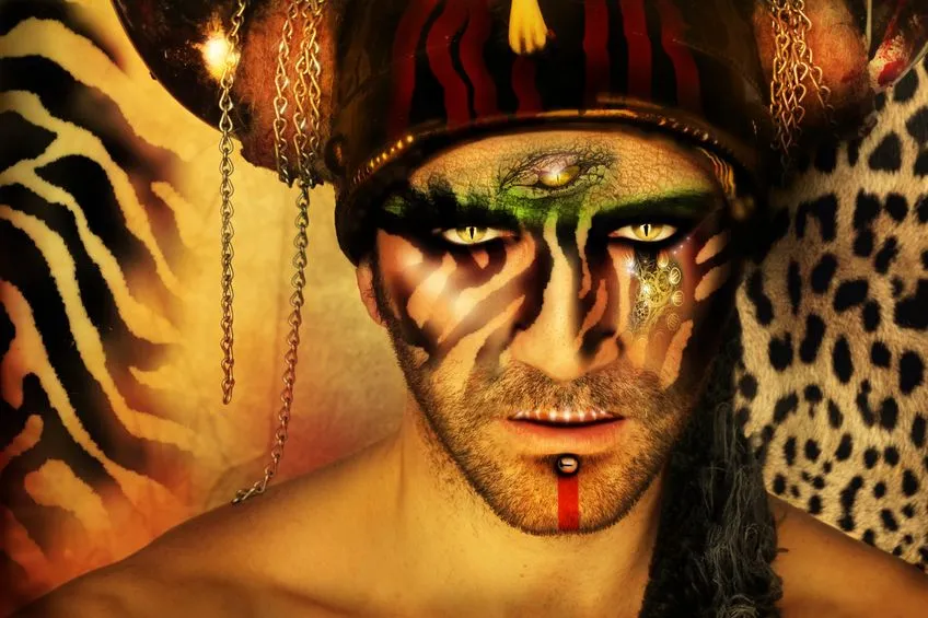 ![]() Shop for Leopard Cosutmes @ Halloween Costumes Let your animistic side shine this Halloween with an easy to create leopard costume. First contour your face with dark brown cream and blend it. Then fill in your eyebrows and prime your eyelids by applying a white shadow. Then blend it all in with a black eye shadow. Line your upper lash line with black eyeliner. Use extended eyelashes for a dramatic look. In order to create a cat like look, add the gold jewels into the inner corner of your eyes. Take white cream makeup and apply it to the upper lips to create the tiger look. Draw a line from your nose and connect it to your lips. Add l dots for the whiskers. Then outline your upper lip with a black pencil and draw stripes on your face to complete the look.