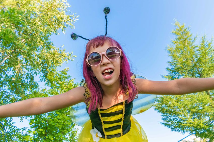 ![]() For a girl bee outfit were a black and yellow dress with wings. You can find such a outfit at any Halloween costume store. Feel free to accessorize with antennas as well. Be sure to add some funky eyeglasses and you can even dye your hair magenta just be different. For boys, purchase a black and yellow sweater and place some poly-fil underneath it. Then, wear some black pants and black shoes. You can also get crazy with some face paint as well. We recommend painting black and yellow stripes along your forehead and cheeks to really stand out.