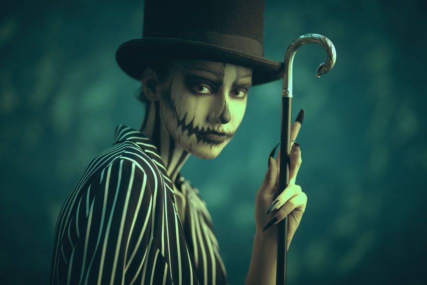 ![]() Skeletons have always inspired movie makers and they are featured in many TV shows and movies. One movie that is particularly popular is Tim Burton's The Nightmare Before Christmas. This skeleton wears a suit with strips and has a very interesting black bow tie that looks like a bat. When it comes to the face, people must use white color to paint their entire face except the area around the eyes where they need to use black color. What is different about this skeleton is that the mouth looks like it was sewed. Use black color to highlight the stitches. Another approach is to look like a skeleton Halloween performer, complete with a long black cane and a black top hat/cylinder hat. You can either where a skeleton mask or face paint. Complete your creepy look with a black striped shirt or blouse. Back to Top ![]() |