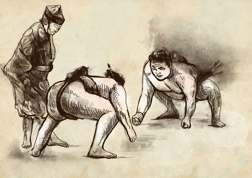 ![]() Sumo wrestlers are popular athletes in Japan. They are known for being overweight men who only wear a silk loincloth called a mawashi. The rest of their body is completely bare. Their hairstyle is made into a topknot style known as a chonmage.