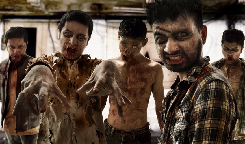 ![]() Shop for Zombie Costumes @ Halloween Costumes To create a basic zombie, first use makeup to lighten your skin (and make it look pale or even grayish). You can use some color or ketchup on your lips and around your mouth in order to get fake blood stains. The clothes don't really matter, but if you are wearing a shirt try to make it look messy, leave it out of your pants partially and leave your shoes untied. Of course, a ripped shirt can make the effect look more real. You can behave like a zombie that hasn't eaten for a while. In order to achieve this look, use even lighter colors on your skin (some parts can be white), forget the fake blood and just walk slowly, without expression on your face. There are many things that lead to the creation of one zombie and one of the most common ways is to get bitten by a zombie. A person that is turning into a zombie has a specific appearance and you can use it for your zombie costume for Halloween. In this stage, people are slowly turning into zombies who can be easily seen by the look of their veins (they are becoming darker and more noticeable so use some colors to make them look like that). This means that it is better to use some shirt without sleeves. Emphasize the veins on your neck and face too. Furthermore, don't forget to highlight the place where you were bitten (in most cases your neck). While it's true that zombies are dead and not getting older, it is also true that their bodies slowly degrade. So, another good idea is to become a rotting zombie. Expose some parts of the body where you will show your rotten skin. Use stickers that represent open wounds or bones.