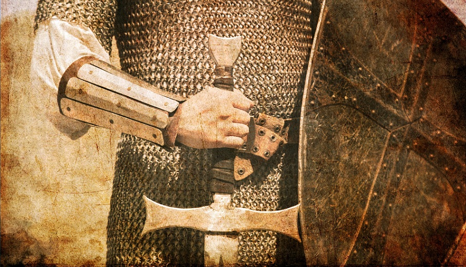 Time to dig out some old clothes or visit the local thrift shop. You can make the central part of your templar knight costume with two simple layers: a dark long-sleeved hoodie and a white lab coat, trench coat or oversized jacket with the sleeves chopped off. Use a large square of red cloth to cut out the cross, which you'll then glue to the chest area. You can also make your costume look like it came straight from the battlefield by snipping some extra holes into the material, fraying the ends and smudging some dirt on the cloth.